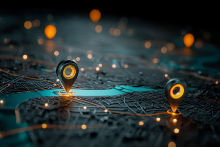 Brightly illuminated city map dotted with vibrant red markers highlighting key areas, embodying modern navigation, urban strategy, and planning insights.