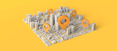 Street Map with GPS Icons on a yellow background. Navigation. 3d rendering.