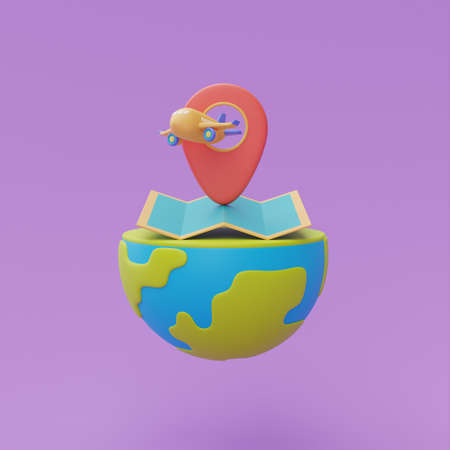 Tourism and travel plan to trip concept with map,location pin and airplane on globe,holiday vacation,Time to travel,3d rendering