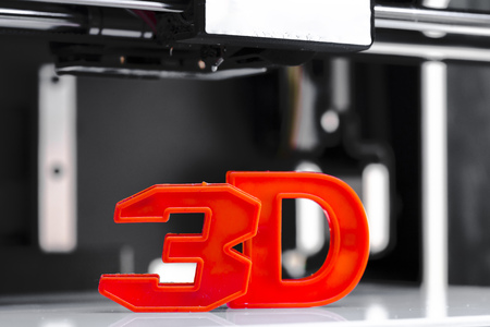 3D plastic printer during work in a factory three dimensional printing. Close-up detail.