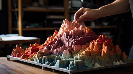 hand with builds a house closeup object printed 3d printer close-up. Progressive modern additive technology 4.0 industrial revolution