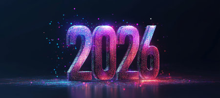 Glowing Futuristic Celebration of New Year 2026 - Sparkling Digital Rendered Card or Background