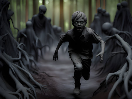 zombie boy in forest , horror concept