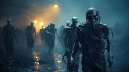 Horror scene with creepy zombies in the dark. Halloween concept.