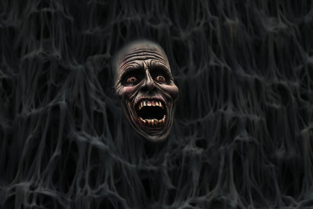 Scary monster face on dark background. Halloween.