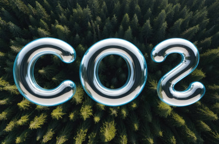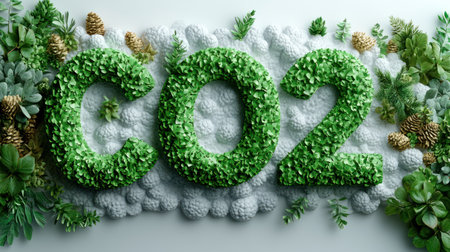 Green foliage forms the letters CO2, symbolizing nature's essence.