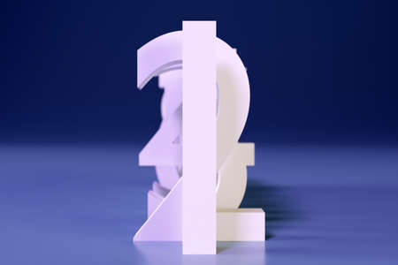 3d illustration large white volumetric letters stand in a row one after another with shadows on a blue background. A set of mathematical numbers