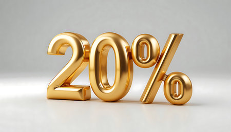 20 Percent Off Sale. 20% percent of. Special offer discount. gold number 20% 3d rendering. sign for marketing, sales, discounts, promotions, financial, business, banner. 3d Golden number