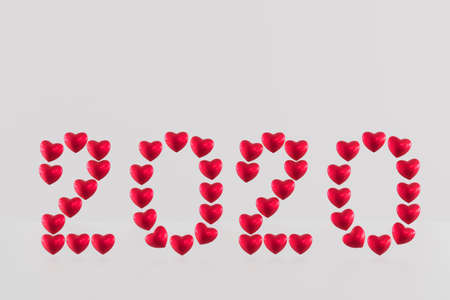 Red heart love 2020 valentine day concept isolated on white background. 3d render