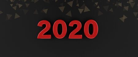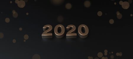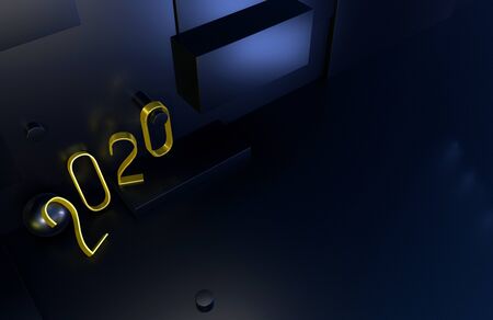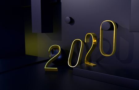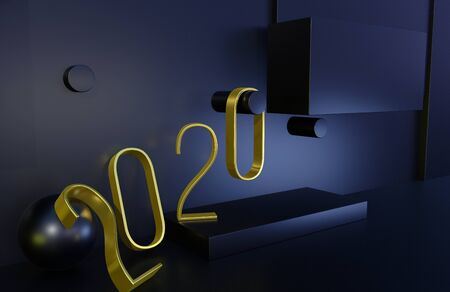 2020 year golden sign in abstract luxury interior or stage with black background. 3D illustration