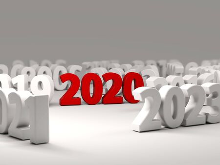 2020 New Year symbol with other years. 3D illustration