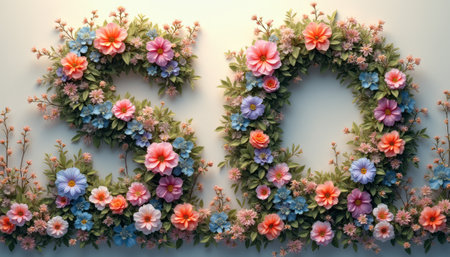A stunning display of colorful flowers intricately arranged to form the number 50, radiating joy and celebration. The composition features a mix of pink, blue, and orange blooms, symbolizing a vibrant milestone filled with beauty and life.