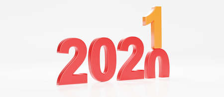Wooden cubes on a red background. 2020 changes to New Year 2021. Christmas concept. 3D rendering