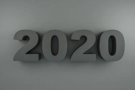 3D number new year 2020 on gray background. Mock up, 3D Rendering
