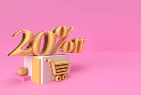 3D Render Abstract 20% Sale OFF Discount Display Products Advertising. Flyer Poster Illustration Design.
