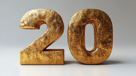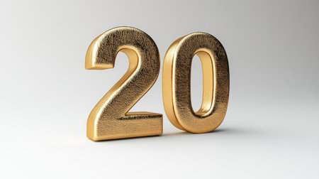3D golden number 20 on a pure white background, front view. --chaos 30 --ar 16:9 --stylize 500 --v 6.1 Job ID: 0b52aa22-f9c0-410e-9e58-2e1ebba87419