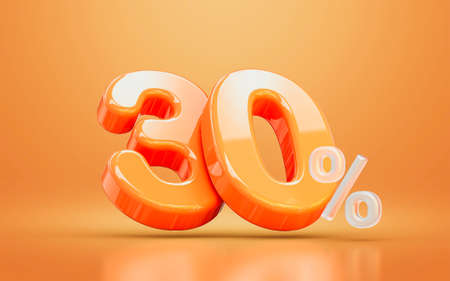 orange realistic glossy 30 percentage number symbol 3d render concept seasonal shopping discount