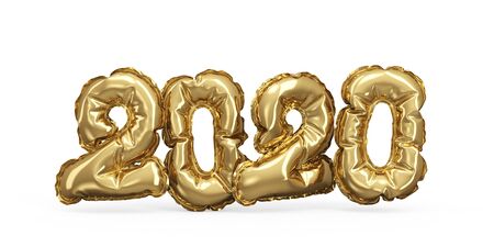 New 2020 Year Gold Foil Balloons Isolated on White Background. 3D Illustration.