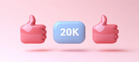 3D Illustration 20,000 Or 20K Text Between Two Thumbs-Up Like Symbols On A Pastel Pink Background