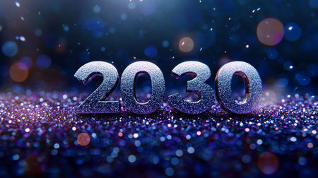 Celebrating New Year 2030 with Sparkling Silver Numbers on a Shimmering Purple Background