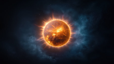 Fiery Starburst Dramatic Cosmic Portrait, Revealing the Untamed Force of a Distant Sun