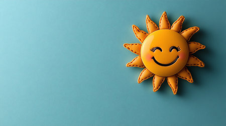 Generative AI Image of Cute Sun with Happy Smile Expression and Empty Space on Blue Background