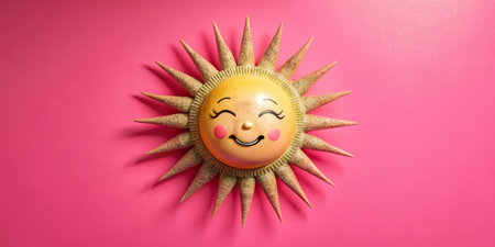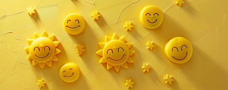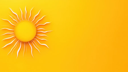 A Bright sun with rays on vibrant yellow background, evoking warmth and joy