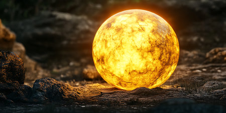 The sun glowing like a burning sphere of fire, solar flares erupting with high-definition cinematic textures, radiating energy in movie style