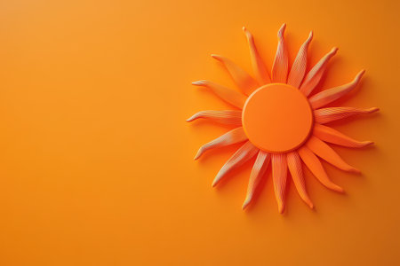 This vibrant illustration features a bright sun against a bold orange background, perfect for adding warmth and cheer to various creative projects and designs.