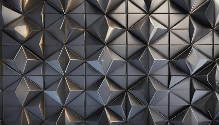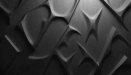Abstract geometric wall paneling in shades of dark gray