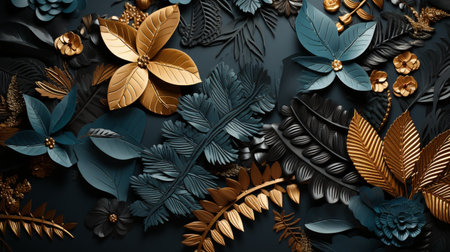 3d rendering of a blue and black geometric pattern with golden elements