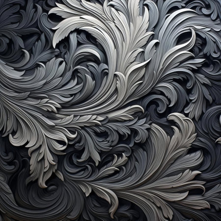 A decorative pattern featuring intricate, symmetrical designs in shades of gray, suitable for backgrounds or textile designs.