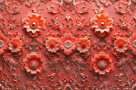 Floral pattern on a red background. Textured surface with flowers.