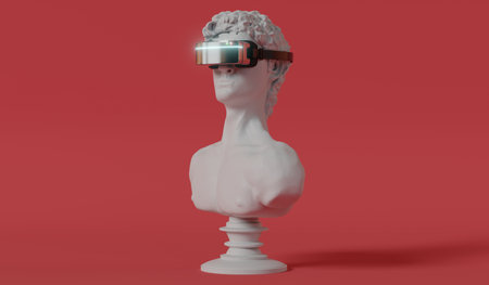 David statuette with VR glasses - 3D illustration