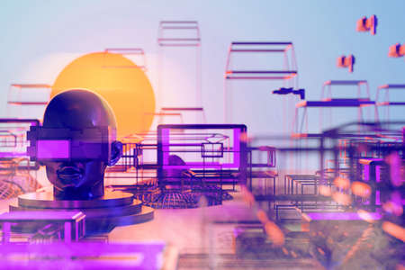 metaverse vr simulation gaming cyberpunk style, digital robot ai, 3d illustration rendering,