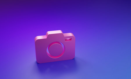 Purple Photo camera icon isolated on purple-blue background. Photo camera icon. Minimalism concept. 3D render illustration.