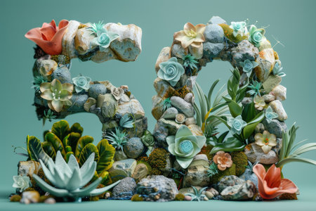 Beautiful stone floral arrangement in the shape of 50