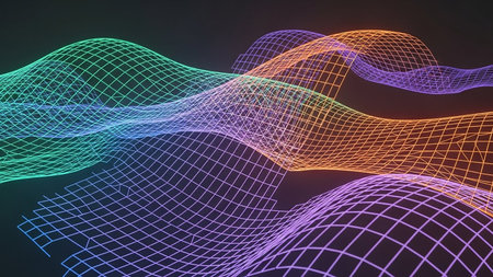 Wavy showing abstract wavy grid surfaces in neon colors. resolution use.