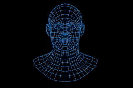 This wireframe depiction of a human face offers a modern and abstract look, perfect for projects related to technology, digital art, and creativity.