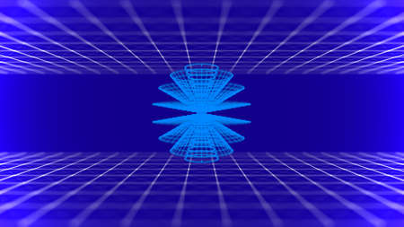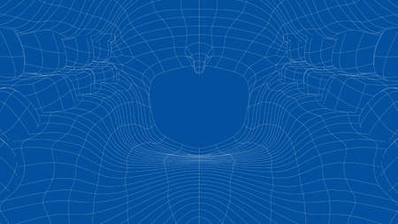 Abstract wireframe tunnel. Blue wormhole. 3D portal grid. Futuristic fantasy square funnel. 3d rendering.