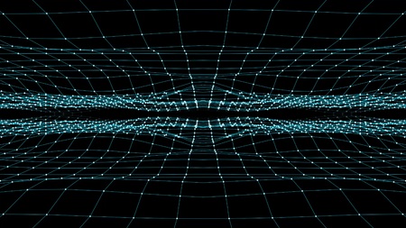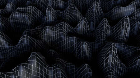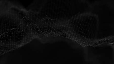 3D illustration Wave of particles on dark background. Technology backdrop.Abstract 3d wireframe landscape grid on black background.