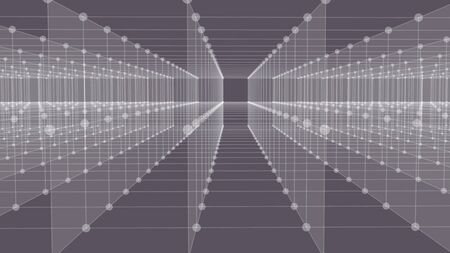 Big Data tunnel, tech background, dot and line connection, information fluid concept. 3d rendering.