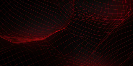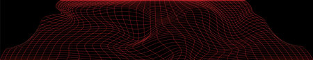 This captivating digital artwork showcases an abstract landscape featuring a wireframe structure against a striking black background, ideal for various creative projects.