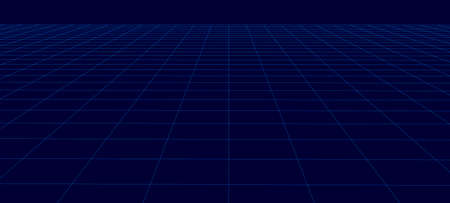 Abstract blue perspective grid. Digital background in retro style. Cyber landscape on dark background. 3d rendering