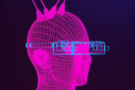 metaverse vr simulation gaming cyberpunk style, digital robot, 3d illustration rendering, virtual reality
