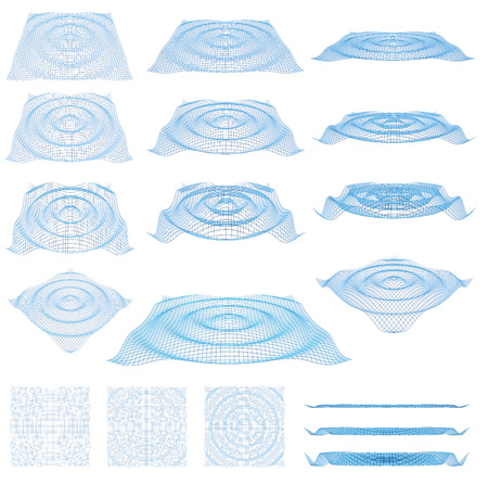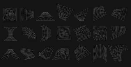 Geometric grids set. White lattice shapes with warp and distortion digital ornament for design and web vector presentation
