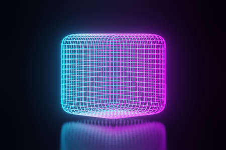 Geometry wireframe shapes and grids in neon pink color. 00s Y2k retro futuristic aesthetic.