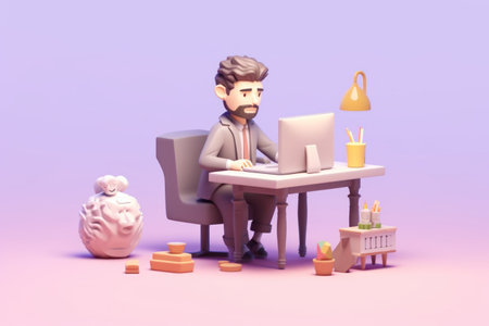 Man Using a Laptop Minimalistic 3D soft illustration.