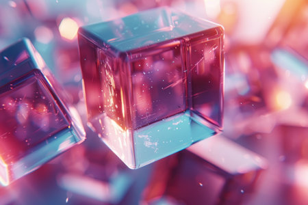 Explore a captivating scene featuring colorful 3D cubes floating in an abstract digital space. The vibrant colors and light reflections create a mesmerizing visual experience.