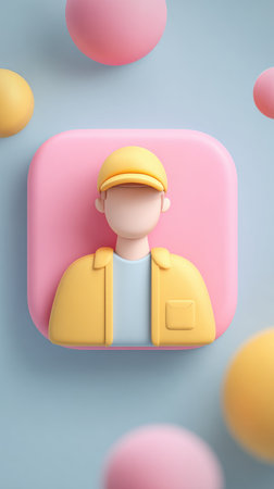 A 3D rendered illustration of a construction worker icon, perfect for apps and websites. The design is modern, minimalist, and visually appealing.